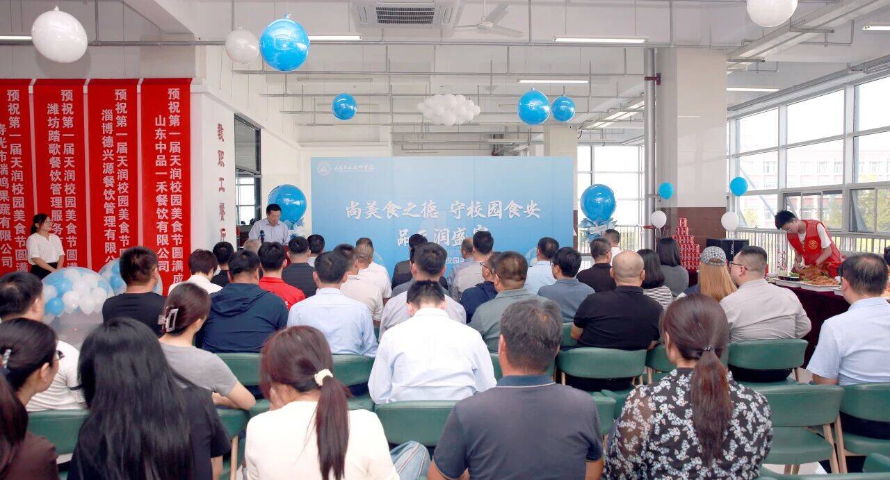 9月25日,以“尚美食之德,守校园食安,品天润盛宴”为主题的山东工业技师学院首届天润校园美食节在桃李苑餐厅举行。