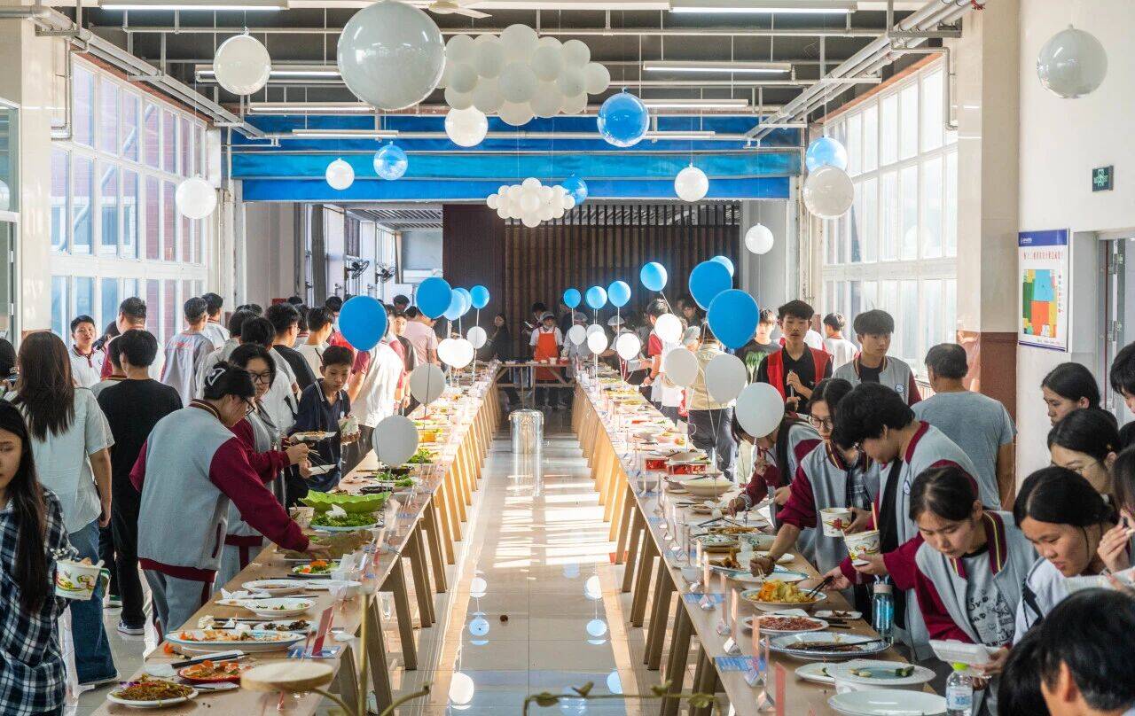 现场158道菜品,香气满溢,热菜蒸腾着烟火气,甜点点缀着巧思,特色小吃藏着惊喜……每一口都是餐饮工作人员精心筹备的心意,每一道菜品都是劳动技能与匠心的鲜活体现。学子们手持品鉴券,在香气中穿梭,或驻足细品,或与同伴分享,笑容与美食相映成趣,美味之外更添生活乐趣。