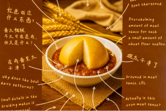 《眨眼间》通过 AI生成了世界上不同国家特色美食的图片,让10岁左右的儿童对图片的细节进行评论,观众通过图像与图像上的评论文字可以了解,在数字化时代中孩子们对AI物化的世界的新的认知方式。