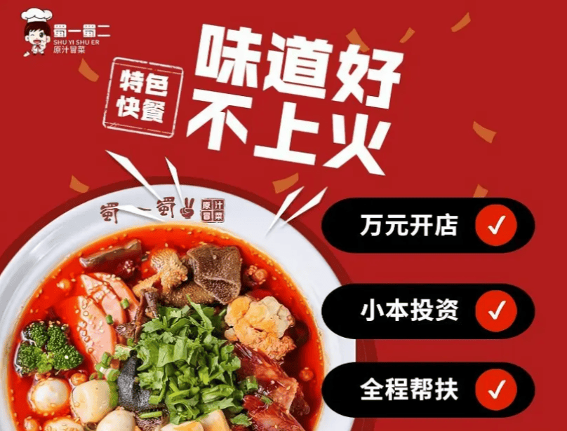 在餐饮行业平均闭店率超56%的背景下,蜀一蜀二以3%的闭店率稳居行业第一。其30㎡门店投资约10万元,日均流水5000元,月净利润达2.5万元,6个月即可回本。品牌核心竞争力在于: